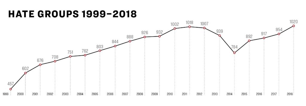 The biggest problem with the hate map, though, is that it’s an outright fraud. I don’t use that term casually. I mean, the whole thing is a willful deception designed to scare older liberals into writing checks to the SPLC. The SPLC reported this year that the number of hate groups in the country is at a “record high,” that it is the “fourth straight year” of hate group growth, and that this growth coincides with Donald Trump’s rise to power. There are now a whopping 1,020 hate groups around the country. America is teeming with hate.