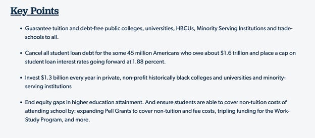But that’s not an argument against canceling student debt today. That’s an argument for creating a plan to make education affordable. Personally, I backed Bernie Sanders’s plan to combine debt cancellation with a plan to fund free public colleges and universities. In addition to funding free public college, Bernie’s plan below would cap student loan interest rates going forward at 1.88 percent.