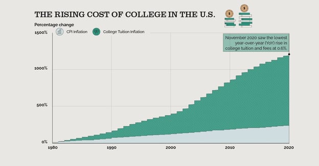 And he’s right. College costs have skyrocketed over the last 30 years.