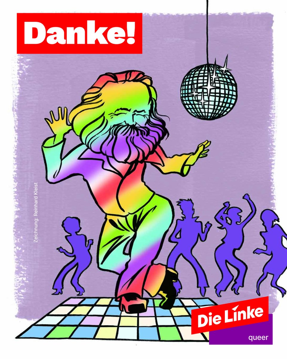 After the election, the LGBTQ branch of Die Linke thanked its supporters on social media with a Disco Marx cartoon. (Image: Die Linke Queer on X)