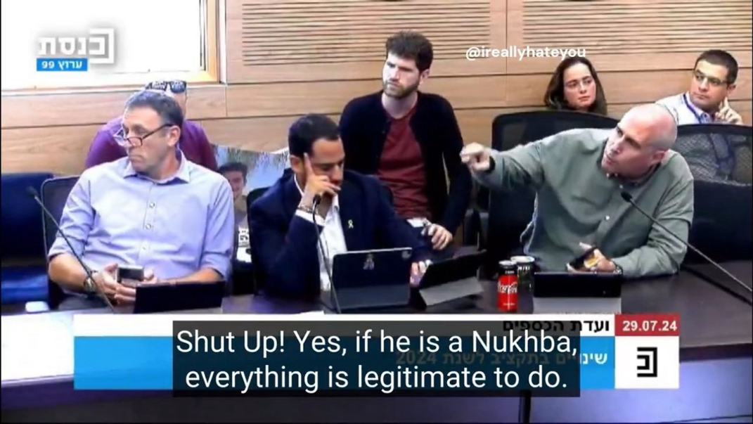 The Knesset, meanwhile, called an emergency session and ended up debating whether raping Palestinian POWs was “legitimate." Opinion was divided. (Screenshots from Knesset TV via Jon Ben-Menachem on Twitter)
