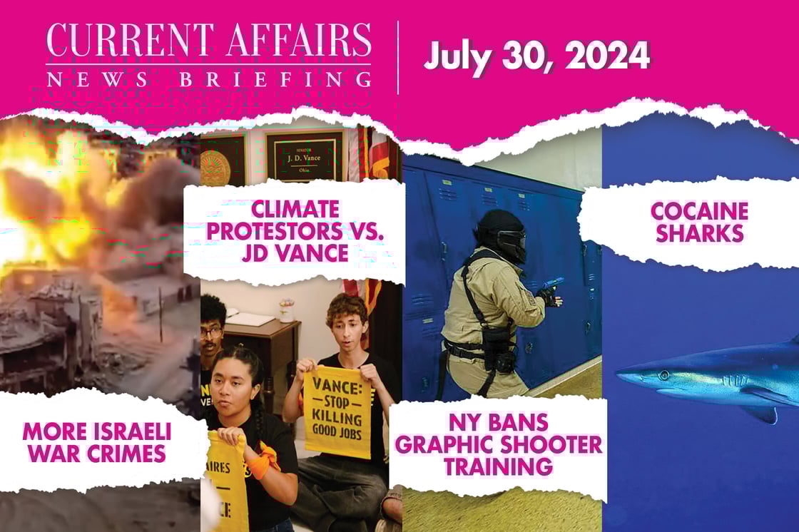 Writing and research by Stephen Prager and Alex Skopic. Editing and additional material by Nathan J. Robinson and Lily Sánchez. Header graphic by Cali Traina Blume. This news briefing is a product of Current Affairs Magazine. Subscribe to our gorgeous and informative print edition here, and our delightful podcast here.