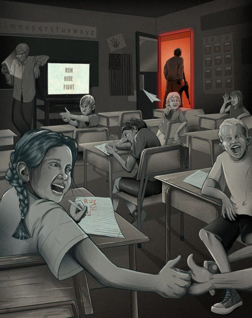 ❧ As a new school year approaches, New York state has banned realistic “active shooter” drills in classrooms. The state will no longer allow the use of prop guns or for actors to role-play as shooters and victims, something which is startlingly common across the United States. As school shootings have grown more common over the last 20 years, school districts have gone about making their shooting simulations more elaborate, and often outright traumatizing. A 2019 article for NBC News described how horrifying they can often be: