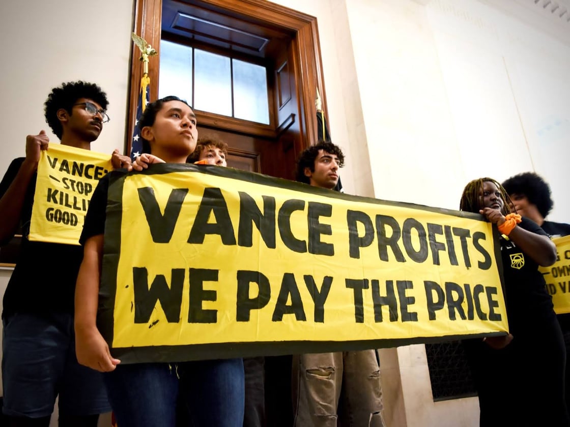 ❧ Climate protestors just occupied J.D. Vance's office. On Monday, the halls of the U.S. Senate office building got some unexpected visitors. Early in the morning, a group of young environmentalists from the Sunrise Movement showed up outside J.D. Vance’s office and blockaded the hallway, carrying banners that said things like “VANCE PROFITS, WE PAY THE PRICE” and “VANCE: STOP KILLING GOOD JOBS.” They were there to protest the Ohio senator’s abysmal policies around climate change—and his heel-turn hypocrisy from what used to be some fairly reasonable views.