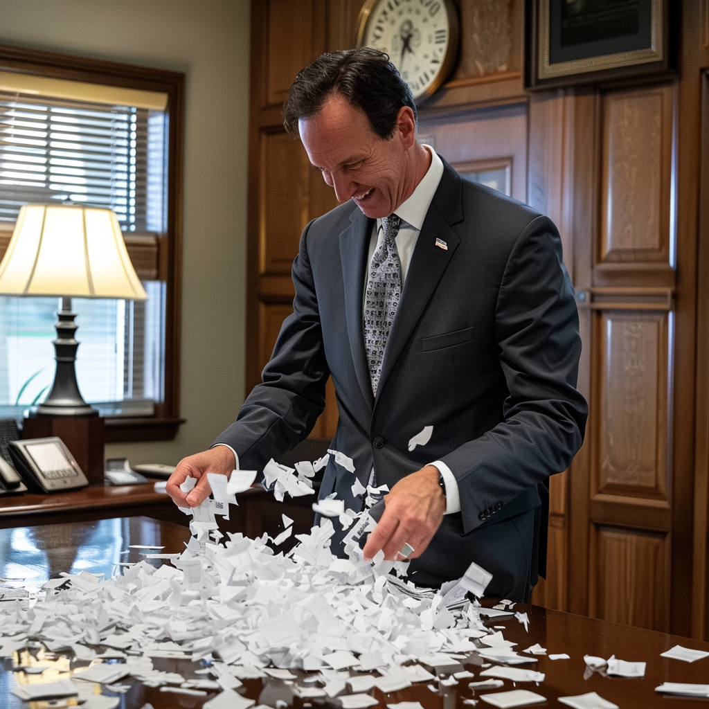 Jeff Landry after receiving a new shipment of lyrics. (Created in Midjourney)