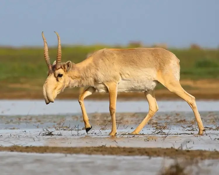 According to Fauna & Flora International, saiga “once roamed the steppes of Central Asia in vast nomadic herds, millions strong, a spectacle said to have rivaled the modern-day wildebeest migration in East Africa.” After the collapse of the Soviet Union, a poaching craze winnowed them down and a mysterious plague killed 90 percent of those that remained in 2015, pushing the species nearly to extinction.
