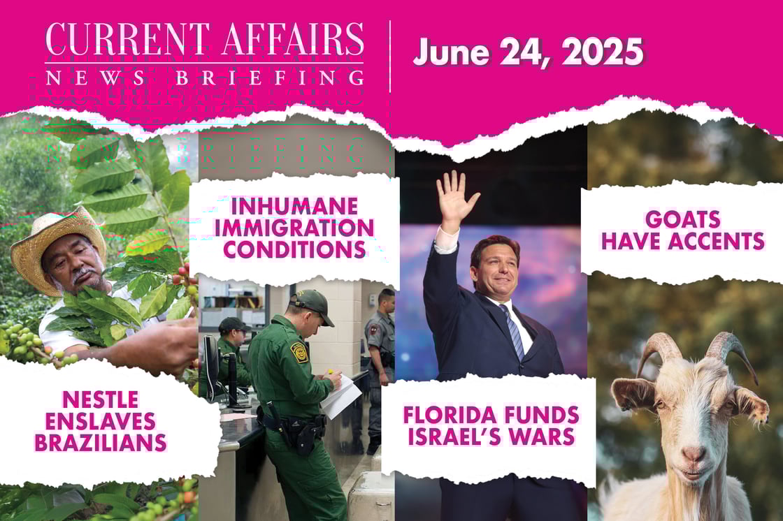 Writing and research by Grady Martin. Editing and additional material by Nathan J. Robinson and Alex Skopic. Header graphic by Cali Traina Blume. This news briefing is a product of Current Affairs Magazine. Subscribe to our gorgeous and informative print edition here, and our delightful podcast here.
