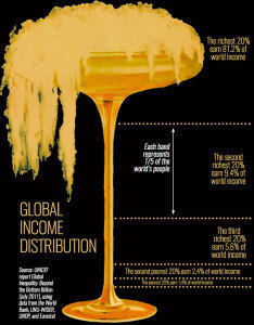 Now the actual numbers of such distributions are often debated. But you don’t have to accept UNICEF’s exact numbers to acknowledge that there is a vast ocean of income that is controlled by a tiny portion of the world’s people. There is more than enough money being generated in the global economy to ensure a decent standard of living for a Bangladeshi factory worker and an out of work Ohio iron worker with a bad knee and two kids. To constantly frame this as a zero-sum game between the global poor and the American poor is an act of basic dishonesty.