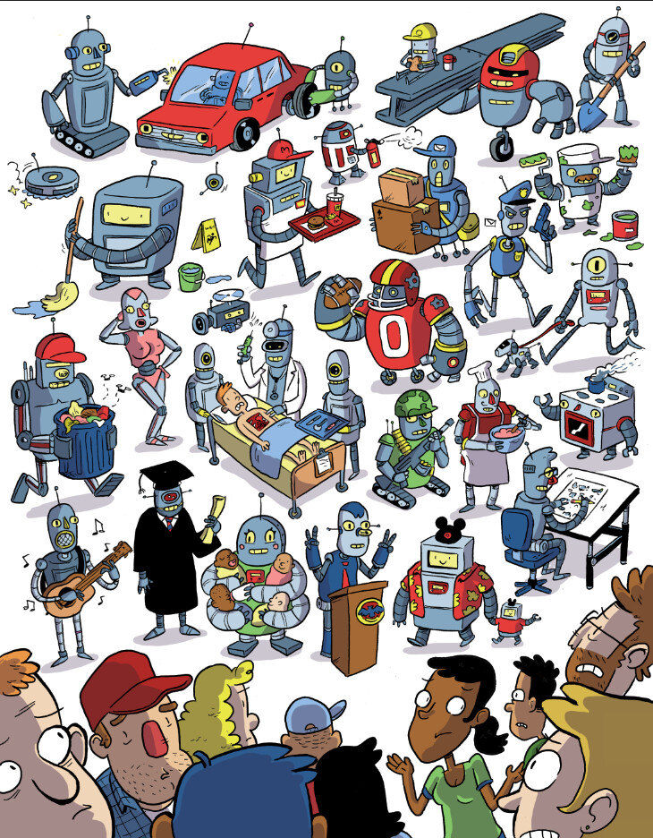 We’ve all heard it a thousand timesrobots are coming for your job. You may think you’re safe, but you’re not. Sooner or later, the robots will show up at your workplace and coldly order you to clear out your desk. Are you a paralegal? A Palo Alto company called Nextlaw Labs has developed an AI that can read documents and conduct legal research. Are you a Wall Street portfolio manager? A Cambridge-MIT startup called Kensho has written an algorithm that’s much better at picking stocks than you are. Are you a fast food worker? A San Francisco company called Momentum Machines has invented a mechanized burger-flipper, which makes gourmet burgers at “affordable prices” that would be “impossible without culinary automation.” All in all, Oxford University researchers have estimated that 47% of U.S. jobs, including “transportation and logistics occupations, together with the bulk of office and administrative support workers, and labour in production occupations,” are at high risk of automation in the near future.