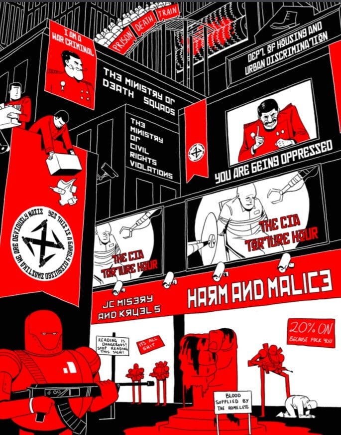 Our stunning 56th issue is here. This is a fun one, folks. Ron Purser shows how the cannibalization of universities by ChatGPT goes beyond student cheating—administrations are embracing the very AI tools that are undoing the institution. Our correspondent K. Wilson takes a trip to the Bible Museum in D.C., Emily Topping revisits the bizarre reality show Kid Nation, Alex Skopic introduces us to a creepy red tower that serves as a metaphor for our economic system, Ciara Moloney shows us how underrated Western movies are, Hank Kennedy looks at old anti-communist comic books, and I pay tribute to New Orleans music! That’s before we get to all the wonderful art and loopy “false advertising,” including products like Democratic Inaction Figures and the “Slur Cone.” It’s a jam-packed issue filled with colorful surprises and insightful analysis, plus gorgeous cover art by Sarah VanDermeer. Check it out!
