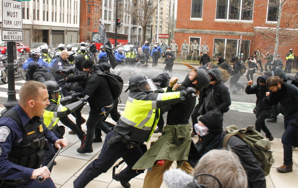 Soon after Election Day, a horizontally-led collective of radicals announced the launch of Disrupt J20. They described the project as “a series of massive direct actions that will shut down the Inauguration ceremonies and any related celebrations and the city itself.” The collective had strong anarchist leanings, but pledged “respect for a diversity of tactics and the plans of other groups.” In that spirit, the collective lent support to planning efforts by affinity groups and individuals oriented towards social justice, whose protests plans varied in degree of confrontation.
