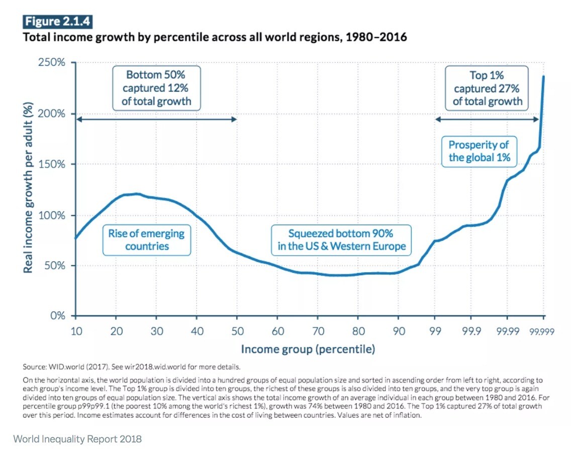 Milanovic acknowledged in response: “You know, there is some truth to that… [If] you actually look at this chart, you basically don’t see any group of people who have a decline in income.” So capitalism is lifting all boats!