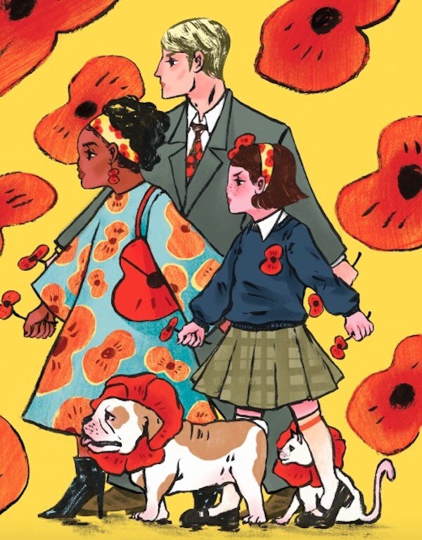 In the weeks leading up to November 11th, mid-autumn England is blanketed each year with a second springtime of faux poppies. Scarlet pins—some petit, with enamel outlined in gold, some outsized and sporting floppy crocheted petals—adorn the lapels of millions of damp-smelling woollen coats across Great Britain and its former colonies. On street corners, in tube stations, booths selling red paper poppies from blue boxes crowd the footpath. If you were to descend and take the train, you would see carriages affixed with scarlet vinyl decals; alighting and ascending to street level, you’d see fallen poppy pins mingling with leaves in the gutters and slicking the road with their trampled blossoms.