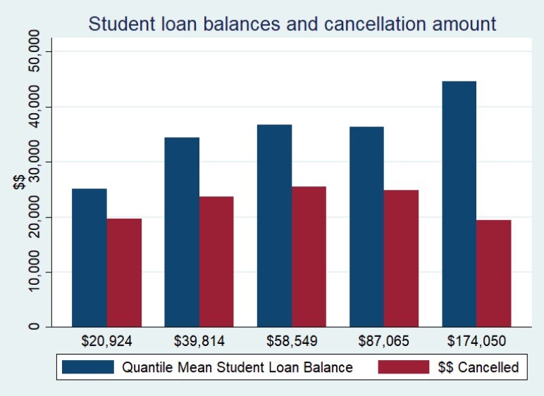 This measure of progressivity—amount of the benefit, as a share of pre-forgiveness income (or wealth)—is the standard way that distributional analysis is done when evaluating policy proposals, e.g., Tax Cuts and Jobs Act of 2017. The idea that it should be done on the basis of raw dollar amounts by quantile, as you find in the analyses that claim the plan is regressive, is not the standard approach taken in the evaluation of the distributional impact of policies.