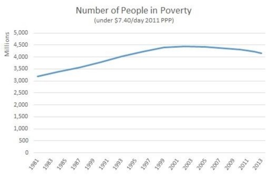 Of course, if people don’t even have the means to  buy enough food to meet their basic caloric needs—let alone take care of health care, housing, transportation and the like—then we cannot say they have been “lifted out of poverty.” Period. Still, Matthews has a point: On the whole, things have at least gotten better for the global poor since 1981.