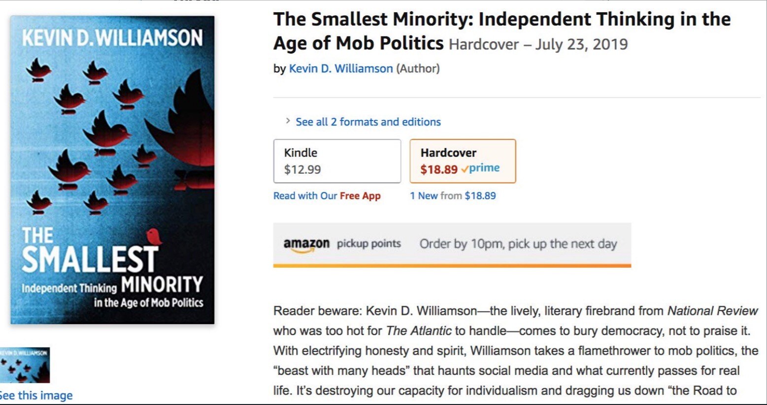 The thrust of it is that Williamson is being persecuted by Twitter mobs, and has produced a bestselling book arguing that social justice warriors are silencing the speech of conservatives. Lo and behold, in July 2019 Williamson released a book about how Twitter mobs were silencing conservatives:
