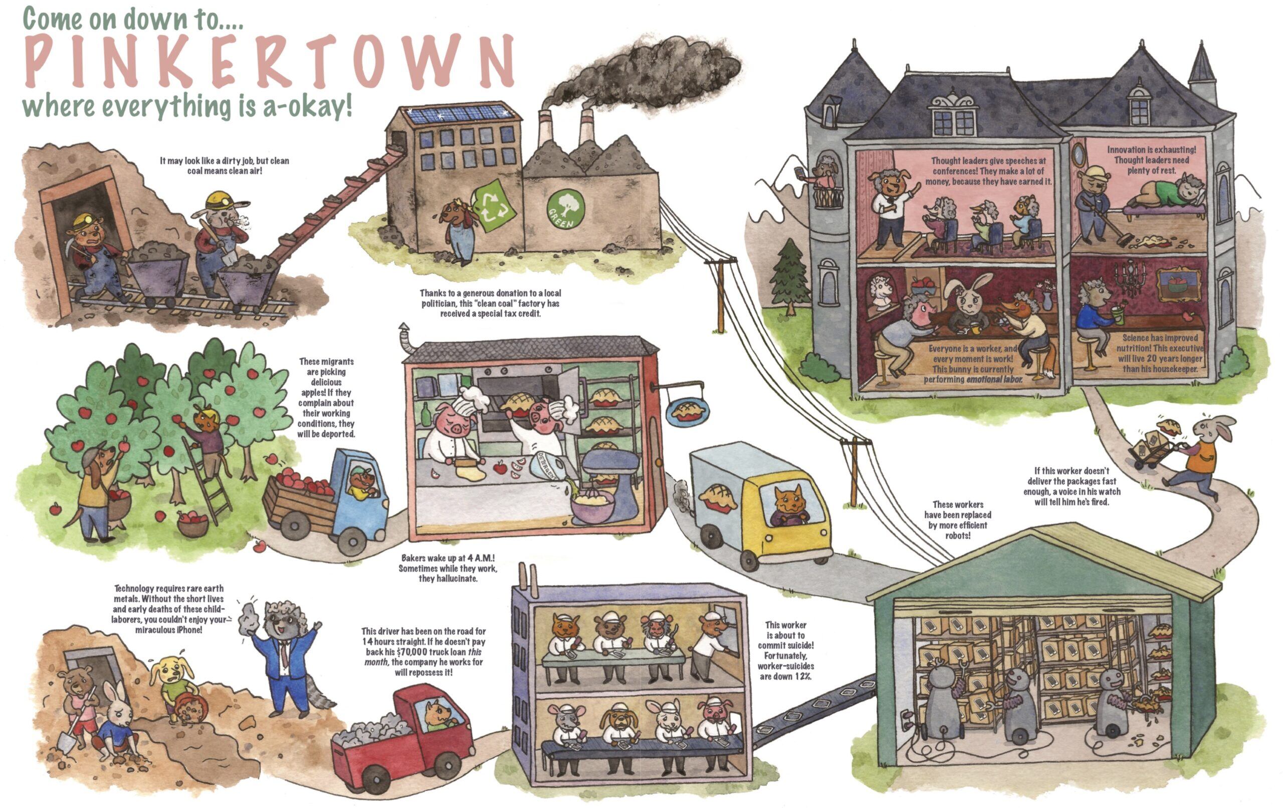 Some people think things are pretty rotten right now. But if you look at the evidence, you’ll find that actually things are better than ever! Here in Pinkertown, where Enlightenment values reign, the data show that all the little creatures are getting along just fine.