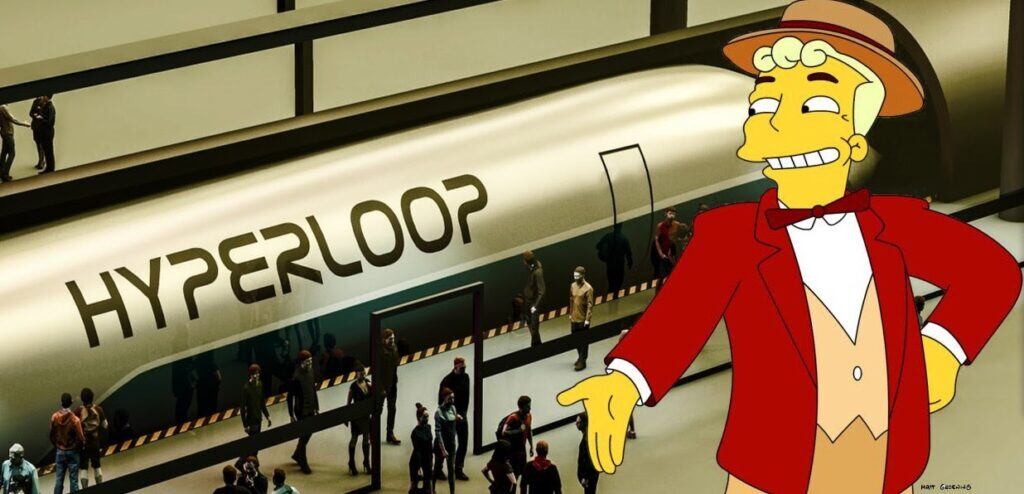 Everyone wants a cheap and easy solution to extremely difficult problems. Roczniak usefully uses the distinction between “A.M.” and “F.M.,” which in this case stand for “Actual Machines” and “Fucking Magic.” In the world of Actual Machines, engineering is slow and difficult and costly and often boring. In the world of Fucking Magic, all you need is a concept and a cool-looking rendering. See, for example, Musk’s “Hyperloop,” which was proposed to great fanfare in 2013 as an alternative to building high-speed rail (it would shoot people in an enclosed tube at 650+ miles per hour). Talk of the hyperloop has since dissipated, and it now appears to have been reconceived as the plan to drive ordinary street cars in a tunnel. The Daily Beast reports that excitement about the loop appears to have fizzled as plans “slam into cold hard reality,” and when Musk invited the press to a demonstration, “instead of a pod rocketing passengers at high speeds, reporters climbed into electric cars made by Musk’s Tesla and were treated to a 40 mph ride along a bumpy path.” (Strong echoes of the Simpsons’ Lyle Lanley here.)