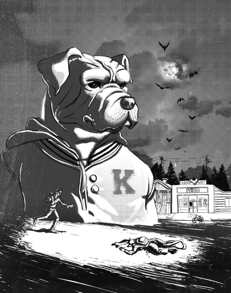 I knew Ronny was there before I seen him. I didn’t expect him to say nothing. He stepped hard onto the sidewalk with his fists balled. His face was all thrust out in front of him like he was a doghead too, but he was just a man.