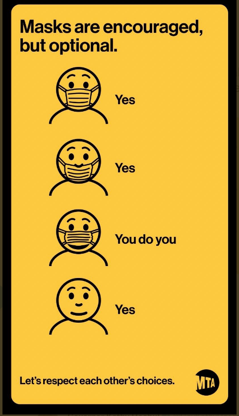 When Donald Trump was president, Republicans were utterly irresponsible with their COVID messaging, treating masks as a form of oppression. But Democrats, who don’t want to be the bringers of bad news, have slipped into their own kind of irresponsibility. New York governor Kathy Hochul recently unveiled an absolutely insane dystopian advertisement for the NYC subway, in which people are told that they can wear masks any way they like, even if the mask leaves their nose or mouth uncovered. “You do you,” said the ad.