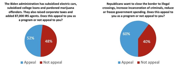 The poll’s most alarming finding is that voters think the Republican Party is focused on the issues that matter most. The top three issues that voters say are important are “price increases/inflation,” “economy and jobs,” and “immigration.” These are also the issues voters think Republicans are focused on, whereas voters think Democrats are focused on “Jan 6th,” “women’s rights,” and “environment/climate change”: