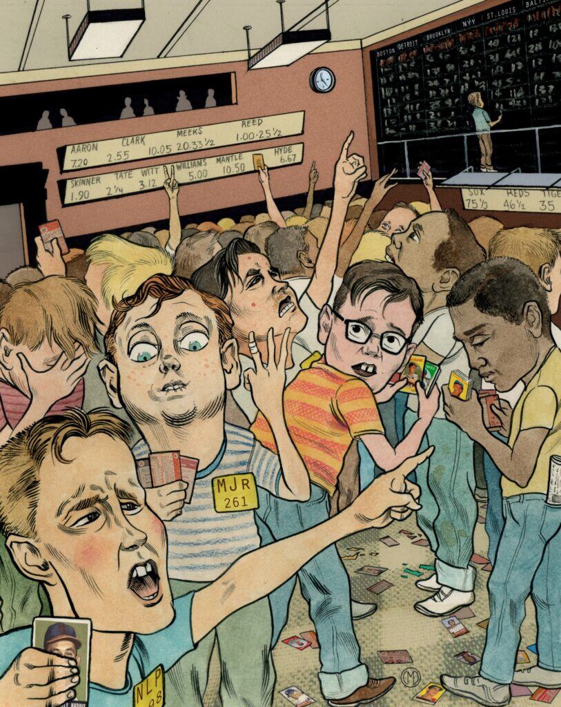 It was the nostalgia of the ’50s and ’60s Topps generations, with deep pockets in adulthood, that elevated sports card collecting into a booming exchange with real money, codified with valuation standardization (Beckett Sports Card Monthly price guides) and trading floors (card shows in VFW halls).