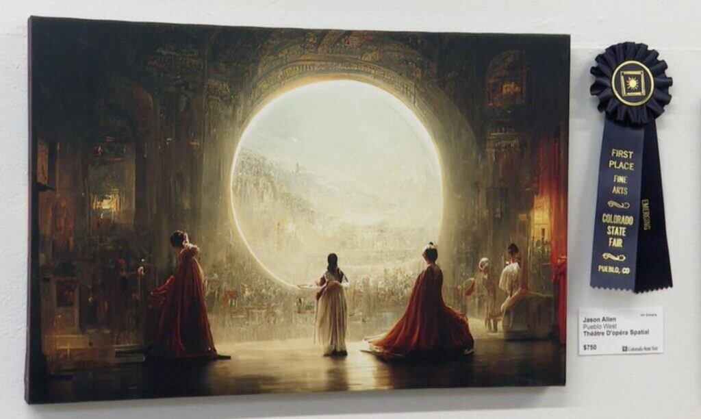 In fact, there was a recent scandal in the art world when a man won an art contest at the Colorado State Fair with a piece of AI-generated art. The prize caused a “furious backlash,” according to the New York Times, because artists said that submitting AI-made art was cheating, even though the entrant hadn’t disguised the fact that he was assisted by “Midjourney,” an AI image-generating tool. The “artist” defended himself, saying “I won, and I didn’t break any rules.”