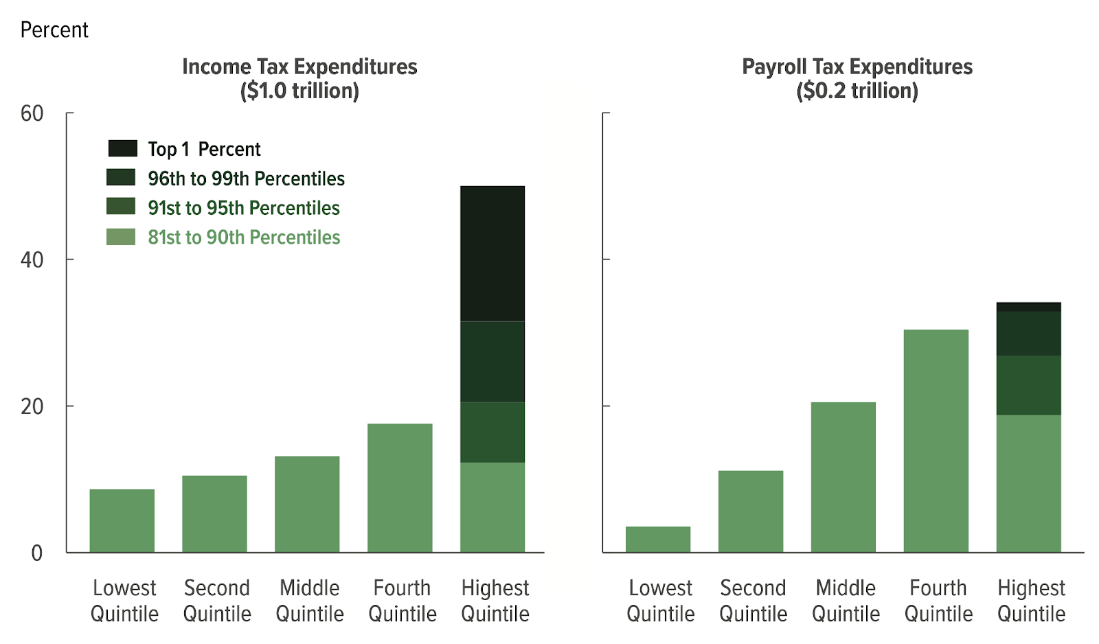 Figure 5: Most income and payroll tax expenditure benefits accrue to the richest households in the income distribution. Source: Congressional Budget Office (2019).