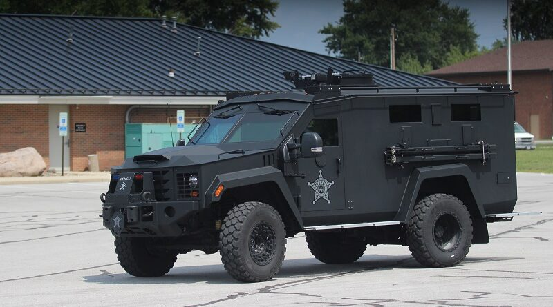 The Sheriff’s Department of Hancock County, Ohio shows off its new “BearCat” armored vehicle, purchased with approximately $250,000 of COVID relief funds in 2023.