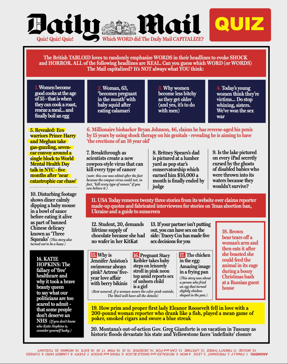 Along with avocados, which of course caused the 2008 financial crash, the Mail informs us that “olives and continental cheese” are woke now. Huh. (Headline: Daily Mail)