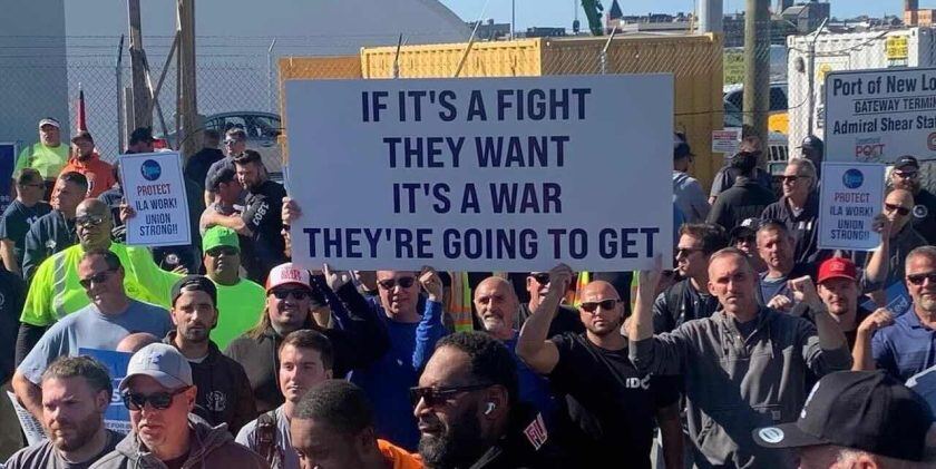 These workers aren’t messing around. (Image: ILA via World Cargo News)